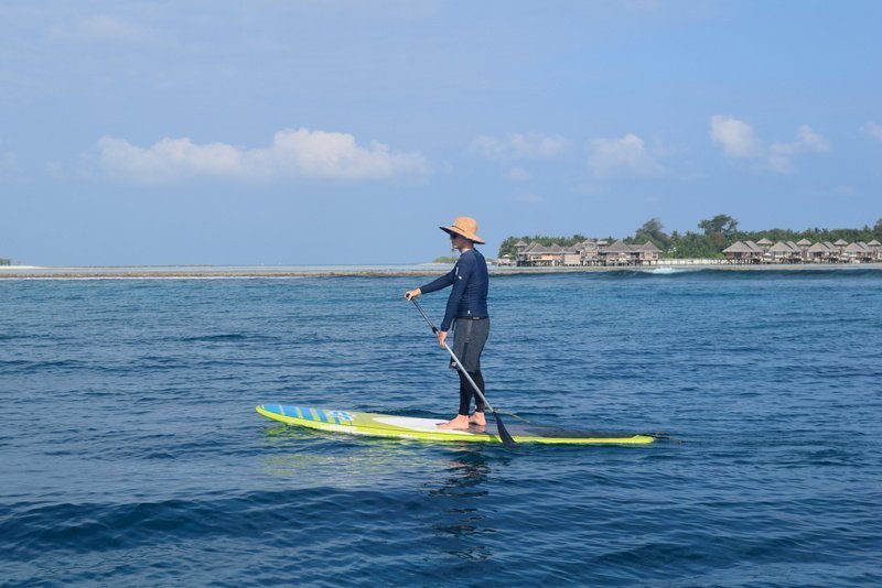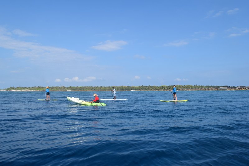 As we turned the corner behind Himmafushi Island, we had the wind and current with us, so we completed almost six kilometres in just over an hour. Being out on the open ocean and looking down to see the fish and coral beneath our feet was a real highlight. The final paddle back to Gili was the hardest, but we were met with the smiling faces of the rest of our team.