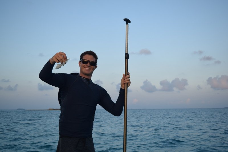 The seven-man paddling crew was made up of Beau, Tropicsurf Manager and SUP surf champion; Naseef, Ocean Paradise Dive Instructor and marine mammal magnet; Emma, Assistant Marine Biologist and official team photographer; Tula, Head of Security and pretty much the toughest guy I know; Ibrahim, Ocean Paradise Boat Captain and life saver; Clare, Marine Biologist and event organiser and Jinah, Hotelier journalist and newly inspired sustainability supporter.