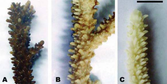 Bleaching is the term used when coral loses its symbiotic algae; this can happen for a variety of reasons. A study by R. Danovaro and a team of scientists showed that oxybenzone promotes latent viral growth in the symbiotic algae. In the study, fragments of coral were taken throughout the tropics and incubated with seawater containing small quantities of sunscreen (10 microlitres). Bleaching occurred within four days, whereas in the control group which had no sunscreen there was no bleaching. Water samples taken 18 – 48 hours after sunscreen exposure showed that the symbiotic algae, instead of being a healthy brown colour were pale/transparent and full of holes. Additionally viral particles were abundant; 15 times more viral particles where found in water samples exposed to sunscreen than in the control group. This suggests that the coral animal or algae contain a latent virus activated by chemicals in sunscreen. This latent infection is found globally. Oxybenzone is a photo-toxicant, which means that its negative effects are accelerated by light – something which the Maldives does not lack. In other studies, oxybenzone has been found to alter the larval stage of the coral from a healthy swimming state to a deformed motionless condition. It has also been found to cause DNA lesions and endocrine disruption, resulting in coral larvae encasing themselves in their skeletons and dying. The severity of this is proportional to chemical concentration.