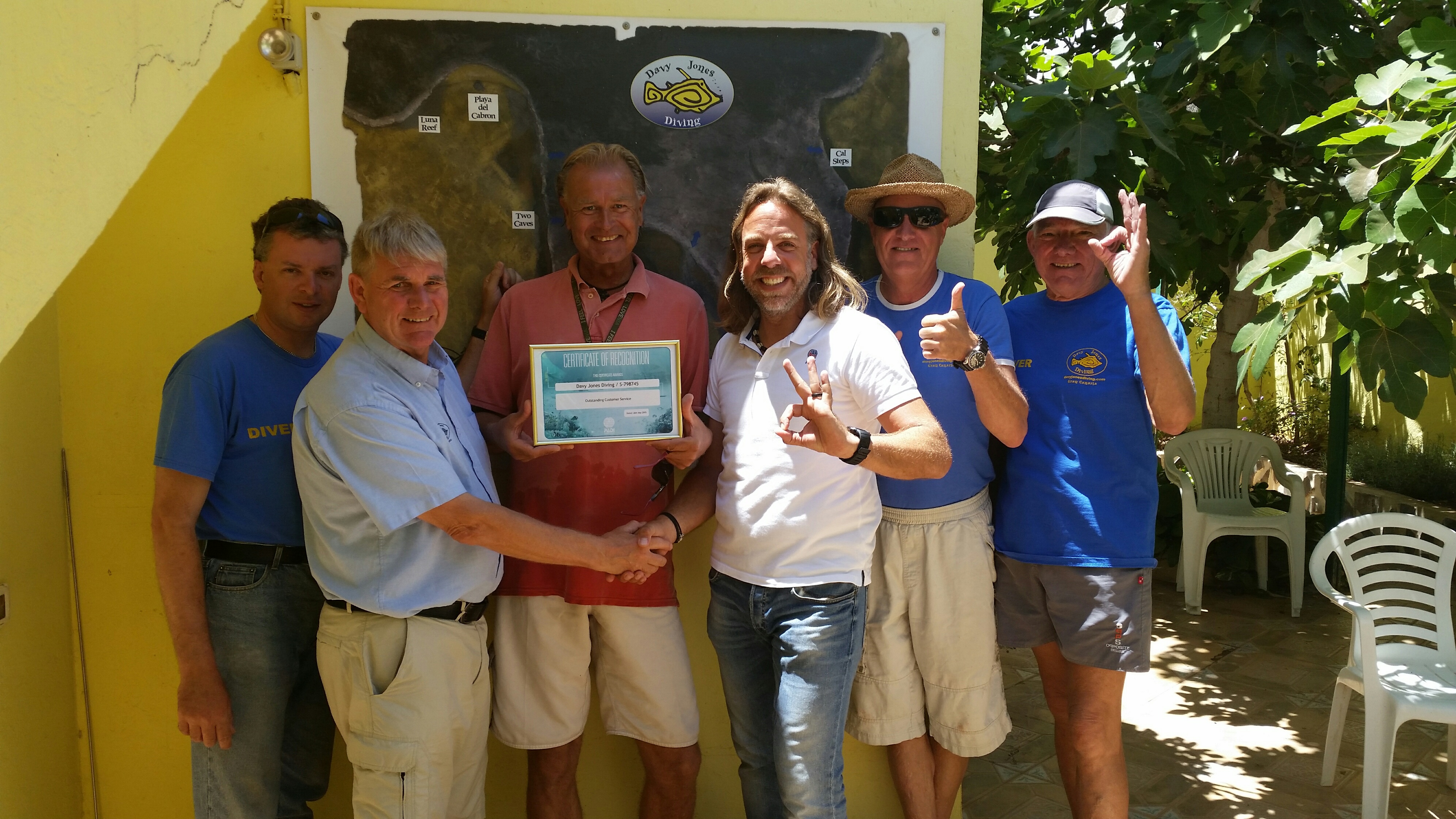 Davy Jones Diving in Arinaga, on the beautiful island of Gran Canaria (Canary Islands), recieved the PADI Certificate of Recognition for Outstanding Customer Service on the 26th of May 2015.