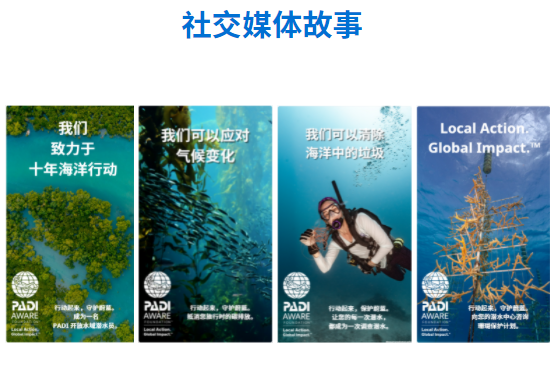 • PADI 使命中心市场营销工具包,包括社交媒体发布内容素材,社交媒体故事素材,网页横幅,邮件抬头图片,邮件文案模板,环保相关主题的视频等等,您全部都可以进行个性化编辑与使用。