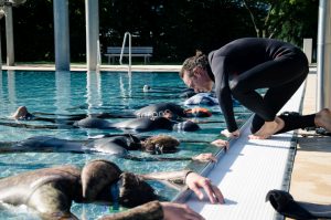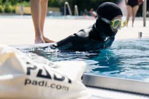 Nach Atemübungen wird abgetaucht um für das Freiwasser vorbereitet zu sein.