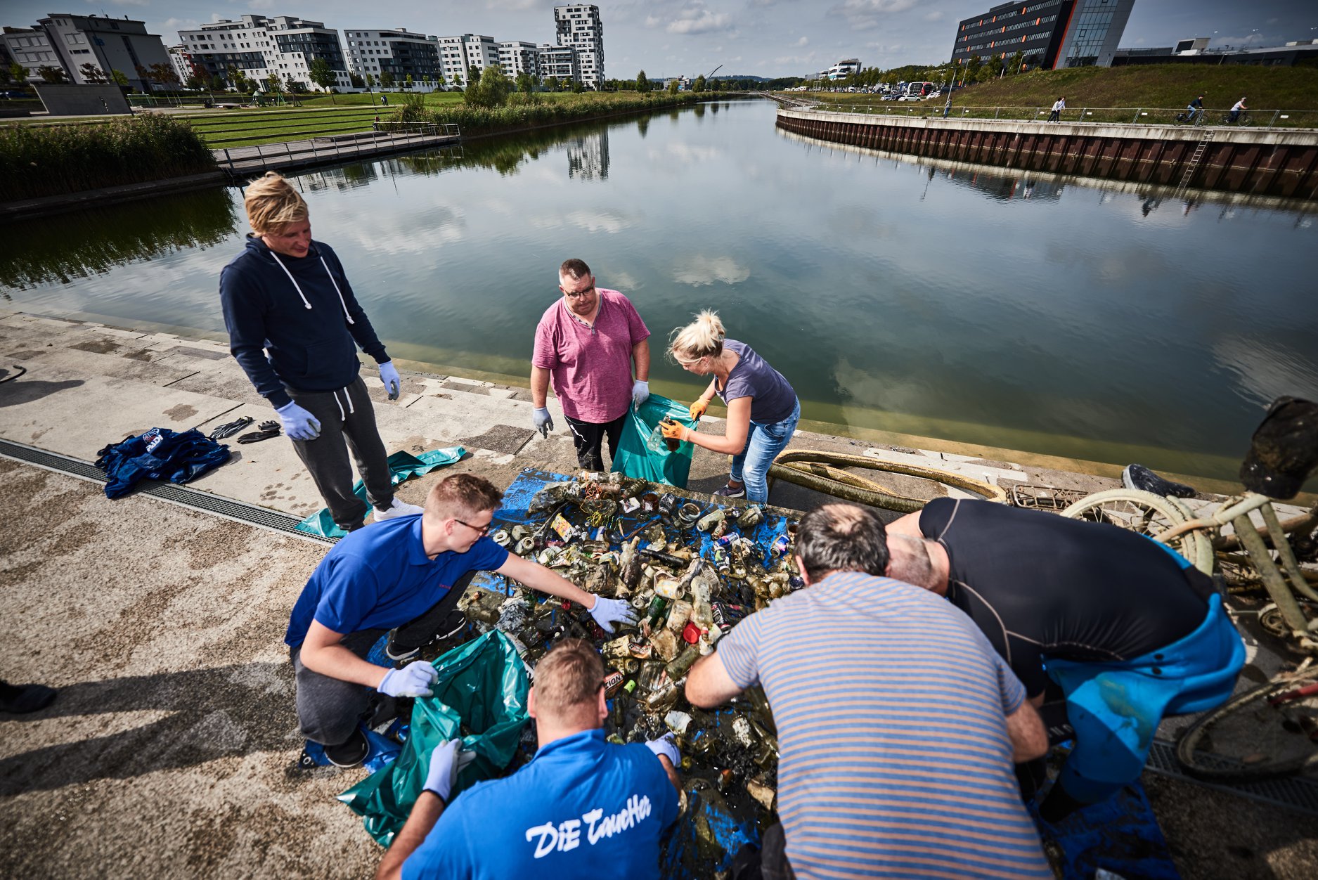 Für Wien konnte Dive Company – Christian Timmermann Taucher und Nichttaucher für diese Aktion begeistern. Mit recordverdächtigen 424 Nichttaucher die Oberwasser reinigen und 90 Taucher die das schönste Badegewässer  Mitten in Wien- Neue Donau- unter Wasser von Unrat befreiten.