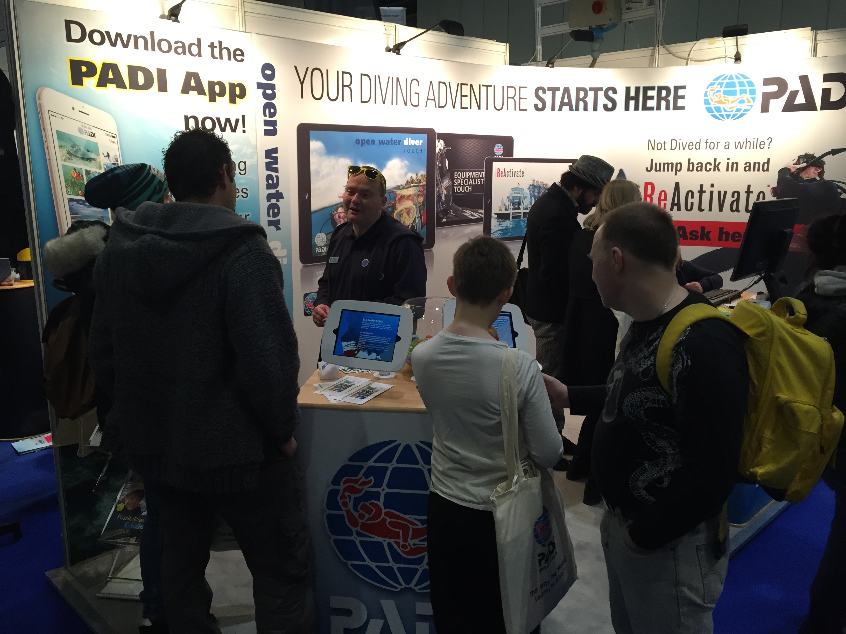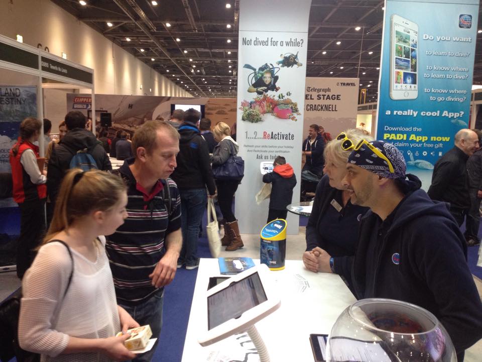 Elf internationale Messen in den ersten drei Monaten 2015. PADI war auf allen als Aussteller vor Ort. Das ist eine Menge Unternehmensförderung für dein weiteres Wachstum! Und der brandneue digitale PADI Stand war der Höhepunkt der Messen. Bei sechs der Messen wurde PADIs Präsenz zusätzlich durch PADI Villages gestärkt. PADI Dive Centers aus dem gesamten EMEA Territorium nutzten die Vorteile als PADI Partner. Auf jeder Messe fanden sich am hoch dynamischen und interaktiven PADI Stand Trauben von Mitgliedern und Tauchern, um die PADI Mitarbeiter zu treffen und die neusten und modernsten digitalen Produkte und Programme auszuprobieren, von Open Water Diver Touch™ und ReActivate™ bis zur neuen PADI App!