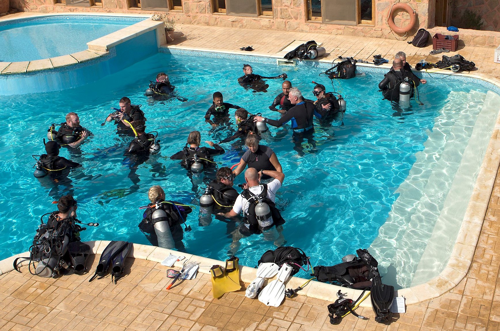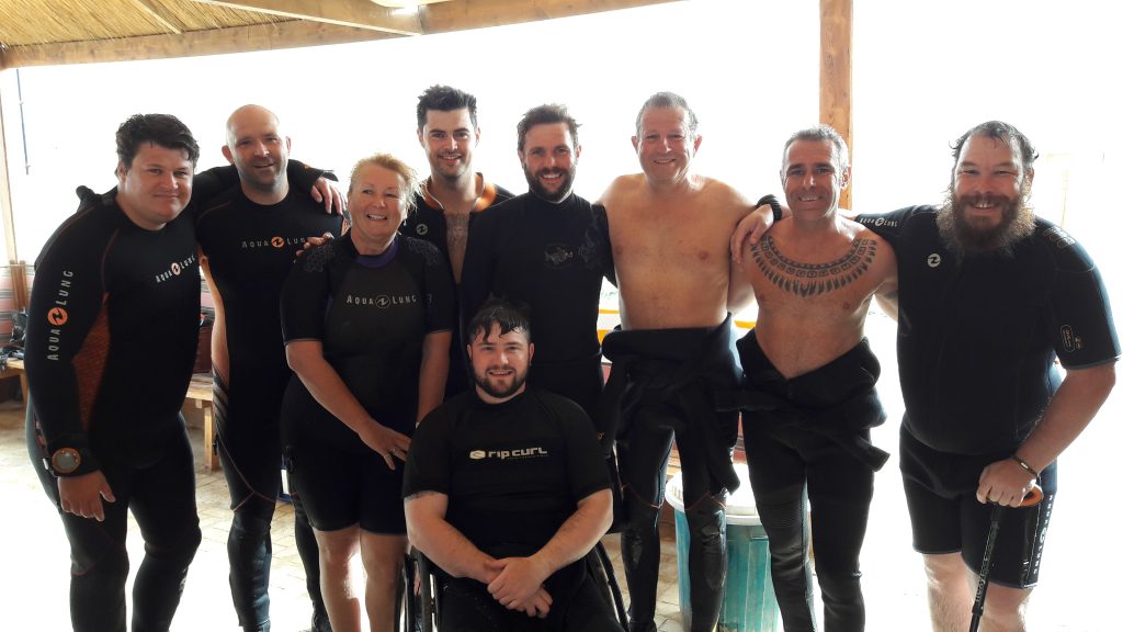 Deptherapy is a UK based charity, using scuba diving to rehabilitate veterans afflicted by both mental and physical disabilities. Deptherapy aims through adaptive teaching to qualify such individuals wherever possible as PADI divers and able to dive anywhere in the world (with the only support of their dive buddy – without extra personnel needed).Veterans – wounded in service – also assisted in the training programme as Instructors and Divemasters. The teaching team included PADI Ambassadiver, Chris Middleton, who lost both legs in Afghanistan and has subsequently worked through the Deptherapy programme from Open Water to Divemaster and is now aiming to become a PADI Instructor. Dr Richard Cullen, founder and chairman of Deptherapy and Deptherapy Education also ran a Deptherapy Education Instructor Training Course, where in status Divemasters and Instructors can become qualified in Adaptive Teaching for the physically and mentally challenged diver.As a spectator, I was lucky to attend sections of each course: I assisted Confined and Open water dives of Open Water students,  dived with the students on their PADI Advanced Open Water and Specialty courses, attended and practiced  the ‘adaptive training’ delivered by Richard!