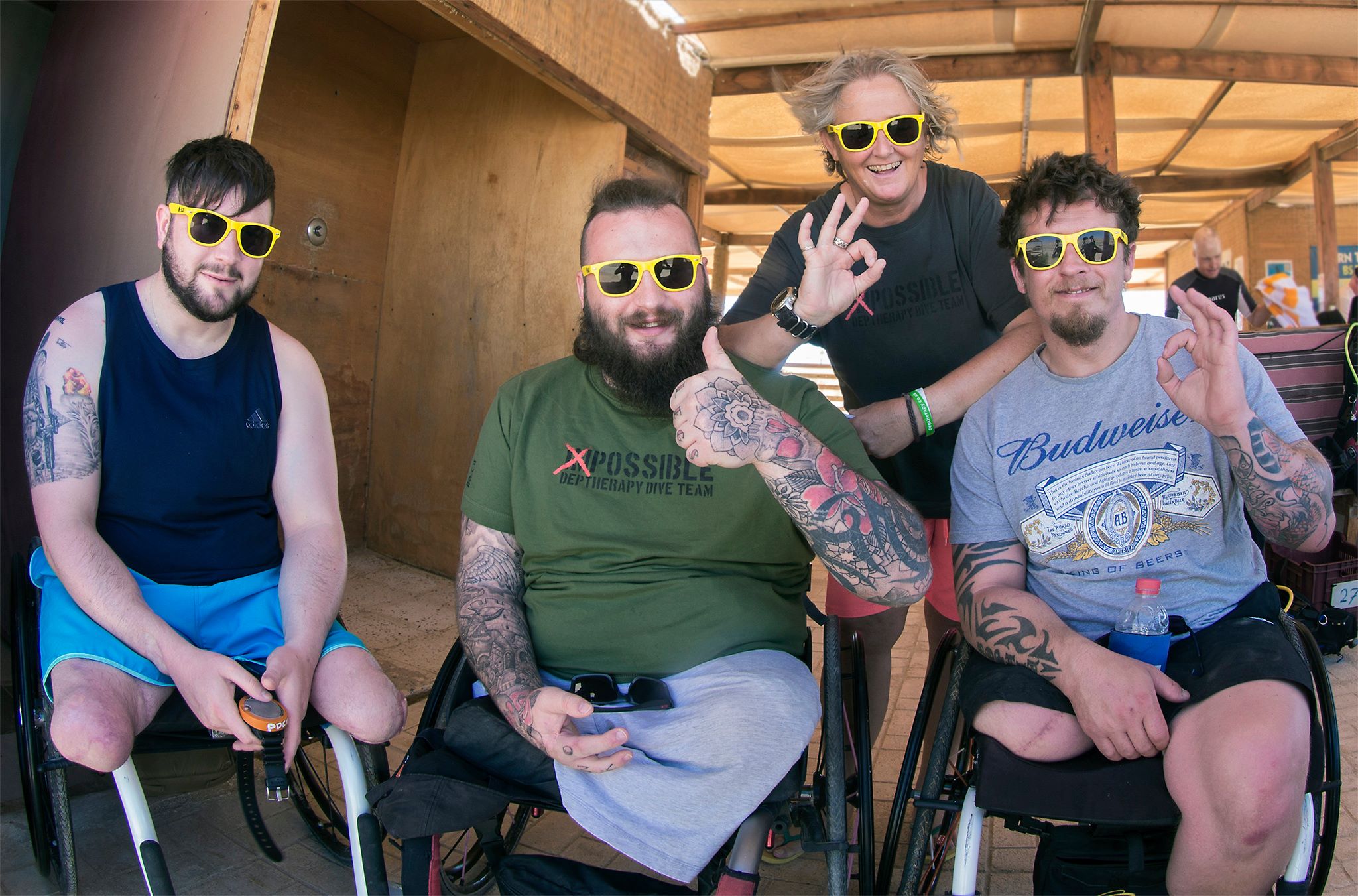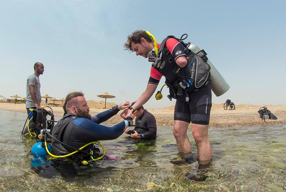 As PADI Regional Manager in charge of Egypt, I had the privilege to become involved in Deptherapy’s largest ever and most successful programme yet.During mid-May, 12 wounded Veterans took part in the Deptherapy programme at Pharaoh Dive Club – The Roots Luxury Camp, which thanks to the owners (Steve and Clare) has become the point of reference for Deptherapy in Egypt. These armed forces veterans suffering from life-changing mental and/or physical injuries, enrolled onto different PADI courses: some were certified as Open Water Divers, some as Advanced Open Water, some others as Deep Specialty Divers and all became EANX divers.