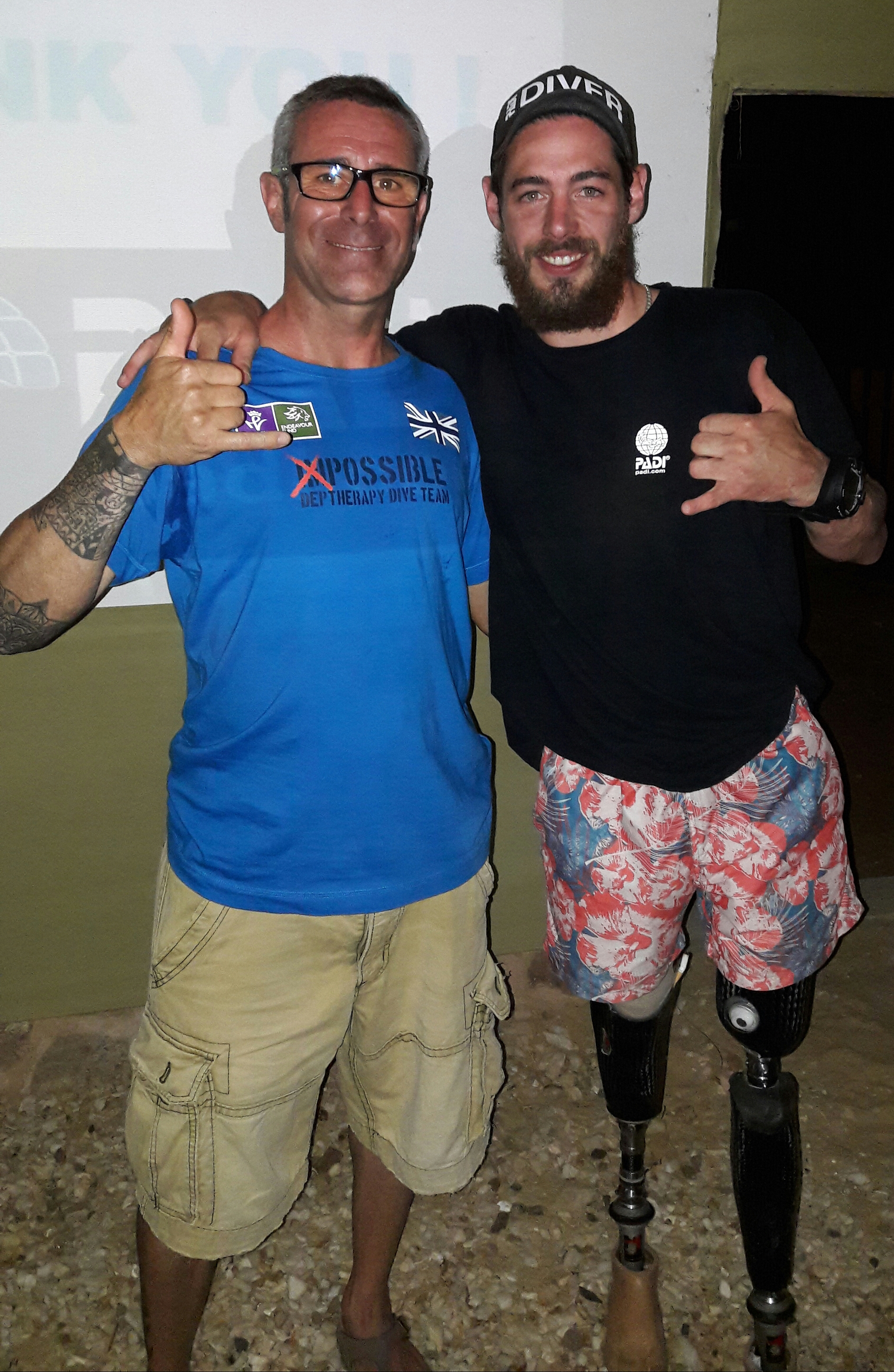 The audience was inspired by our words and the majority of OWD completed the AOWD in the next days. Some of the newly certified divers are willing to progress even further, motivated not only by Chris but also by Andy Searle, a motivated diver who lost both legs during his first tour of duty in Afghanistan, who is now working through his Divemaster Course.