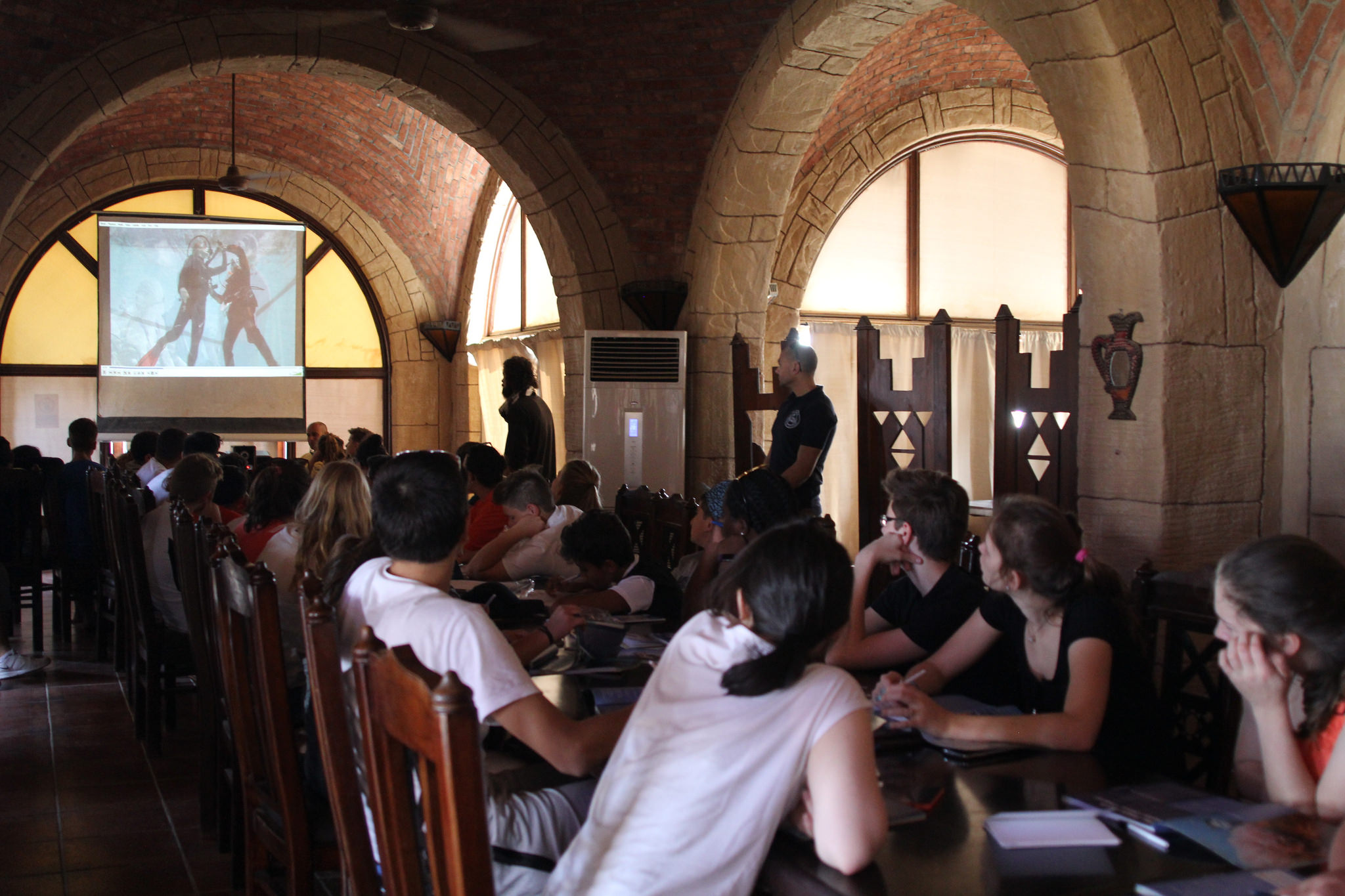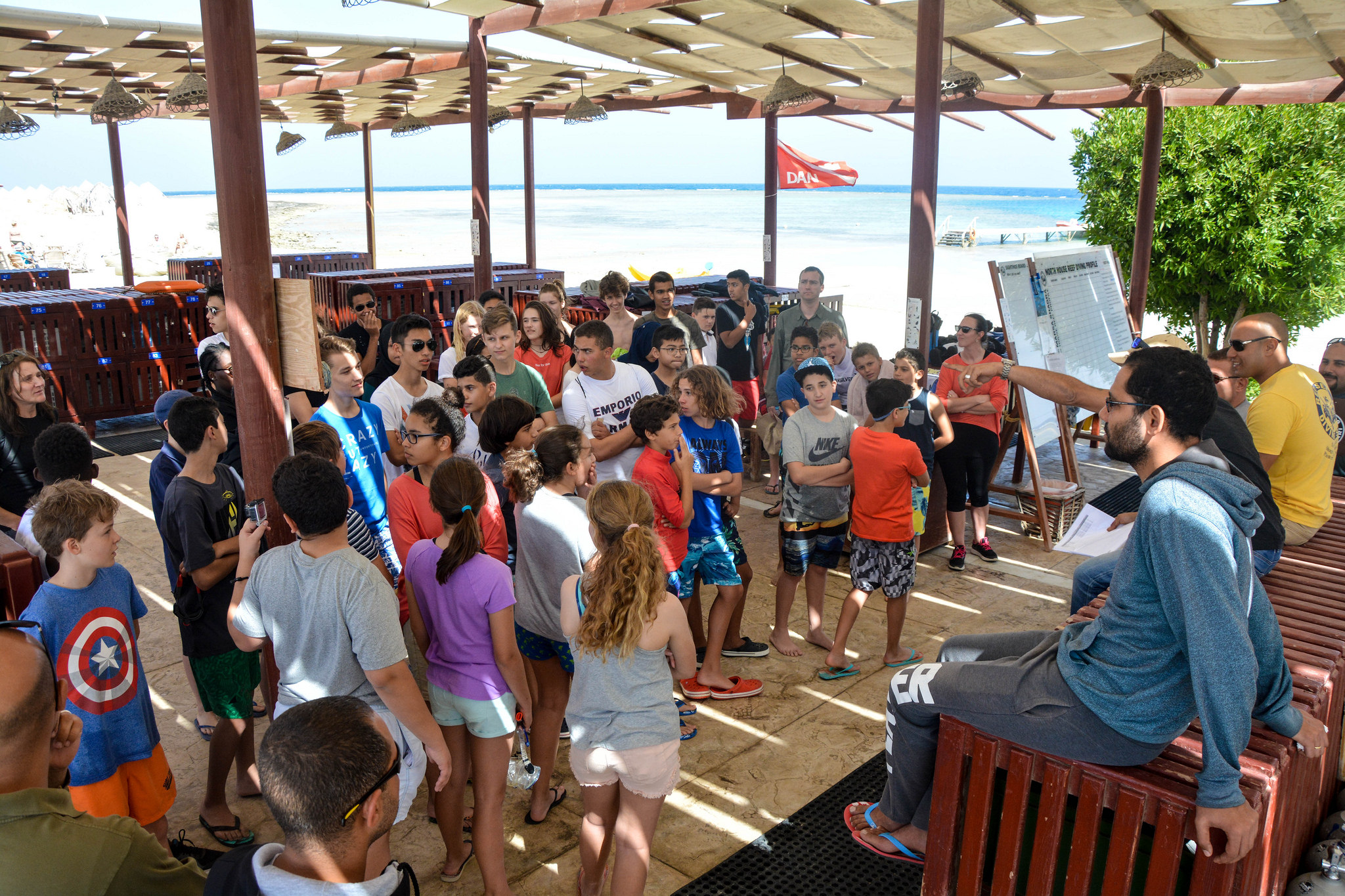 On one evening, a team from HEPCA (Hurghada Environmental Protection and Conservation Agency) visited to conduct a workshop with the students, talking about their valuable activities in the region, including their new Red Sea Defender educational vessel. They then collected plankton from Marsa Shagra’s bay and examined their findings under the microscopes, giving them an insight into the science behind what they were seeing underwater and the importance of protecting the fragile environment.