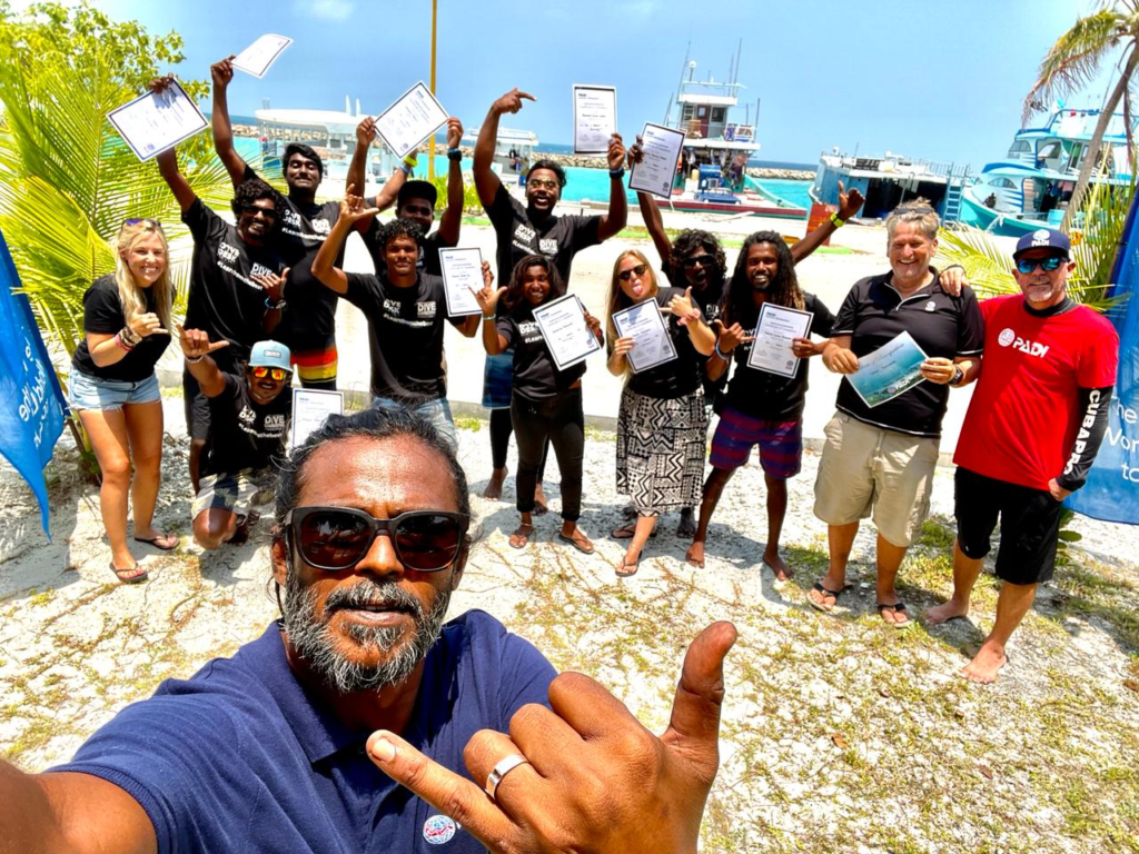 Le personnel de PADI joue un rôle crucial en entretenant des relations de travail étroites avec les opérateurs de plongée, en contrôlant et en visitant les magasins de plongée, en organisant des programmes de formation et en développant l’industrie de la plongée aux Maldives. L’attention qu’ils portent au marché a permis la création de nombreux professionnels locaux de la plongée, rendant ainsi l’enseignement de la plongée accessible à toute personne intéressée. La reconnaissance par PADI du travail que nous accomplissons nous a également encouragés, notamment en nous décernant le prix Outstanding Contributions in Professional Diver Training en 2022 et le prix Outstanding Contribution to People and Humanity en 2023.