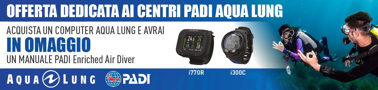 Chi acquisterà un Computer Aqua Lung modello i770R o i300C riceverà in omaggio il manuale Nitrox Diver PADI, un’ottima opportunità per negozianti ed istruttori subacquei per coniugare al meglio la vendita dell’attrezzatura e dello specifico corso PADI.