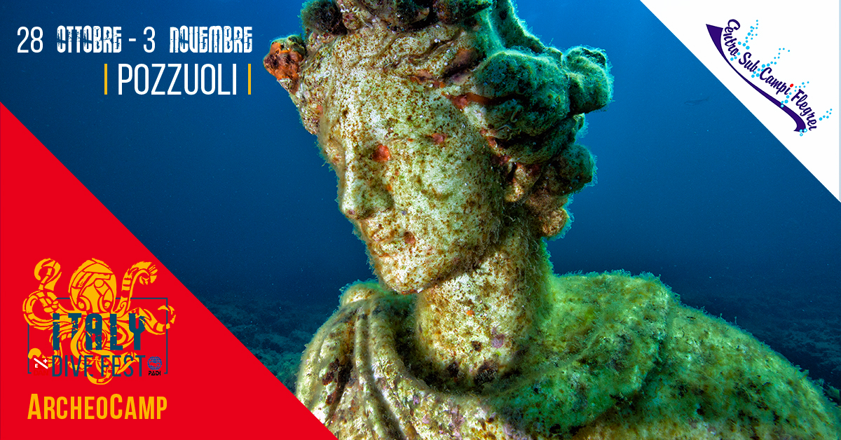Si chiuse il sipario sull’Italy Dive Fest by PADI & DAN realizzato a Pozzuoli-Baia lo scorso 28 Ottobre – 3 Novembre, in collaborazione con il Centro Sub Campi Flegrei in concomitanza con la III edizione di ARCHEOCAMP un evento internazionale per la promozione dell’Archeologia Subacquea e del Parco Archeologico Sommerso di Baia, posto unico al mondo.