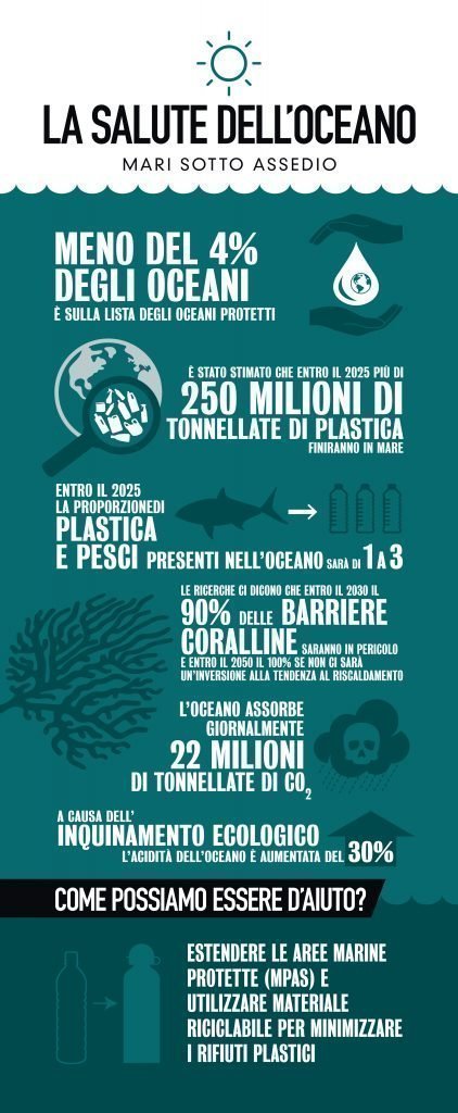 E il nostro pianeta ha bisogno di tutto l’aiuto possibile. Ogni anno, otto milioni di tonnellate di plastica vengono immesse nei nostri oceani. Le temperature elevate e l’acidificazione dell’oceano hanno di fatto distrutto il 20 percento delle barriere coralline nel mondo. Lo sfruttamento eccessivo della pesca è dilagante. Alcune specie di squali sono al limite dell’estinzione, il loro numero si è ridotto dell’80 percento – la scomparsa di questi predatori, all’apice della catena alimentare, getterebbe l’intero ecosistema nello scompiglio.