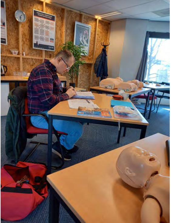 仕事柄、AEDのことはよく知っていましたが、数年前に妻からOrange Cross(オランダ)のファーストエイダ―としてのトレーニングを受け、すぐにファーストエイドに夢中になりました。2021年、妻がEmergency First Responseに出会い、彼女はEFR® Instructorになりました。2022年初頭、de Ridder氏はEFR Instructor TrainerのJos Rosier氏(MI – 903902)に連絡し、妻からコミュニケーションの手助けを受けて彼もEFR Instructorになりました。