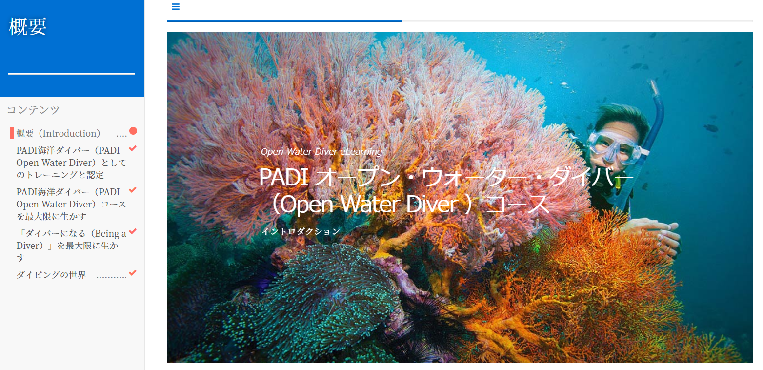 昨年末にリリースされて高評価をいただいているIDC eラーニングに続き、オープン・ウォーター・ダイバー eラーニングも最先端のブラウザに適合した学習用プラットフォームで新しく生まれ変わりました。