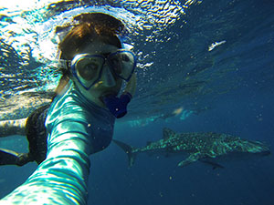 저는 엑스마우스 다이빙 센터에 고래 상어 투어 진행에 책임을 맡고 있습니다. 고객들을 고래 상어와 함께 스노클링을 하는 투어로 안내하고 닝갈루 리프를 탐험하게 합니다. 투어가 없는 날에는 다이버들을 바다 거북이와 상어, 바닷뱀과 많은 어류를 만날 수 있는 닝갈루 리프의 아름다운 사이트로 안내합니다.