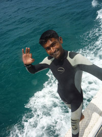 PADI 다이브마스터가 되기 전에 저는 상업 다이버이자 군대 다이버였습니다. 레크레이셔널 다이빙을 시작한 후에 저는 이것이 저의 다이빙 경력을 더욱 넓힐 수 있는 것이라는 것을 깨달았죠. 다이브마스터 코스는 정말 훌륭한 경험이었고 PADI 시스템을 알 수 있도록 기회를 준 강사들 잰 스와르츠와 샤만 프리바 카루파하나에게 감사를 드리고 싶습니다.