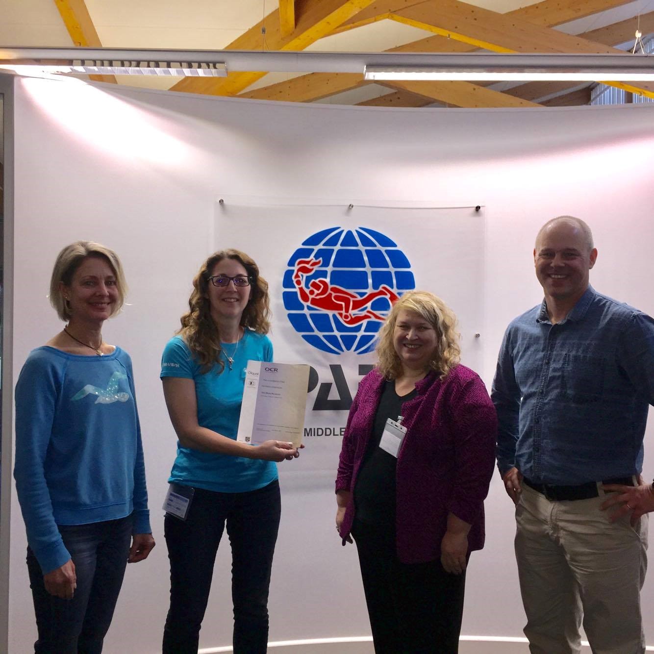 During my IE on 3rd – 4th December 2016, my IE Examiner, Erika Hoffman, assessed our wet and dry presentations for our OCR portfolio – another good example of how closely linked the courses are. The IE was a busy but overall enjoyable weekend and I was thrilled when Erika finally shook my hand and congratulated me on becoming a PADI Open Water Scuba Instructor.