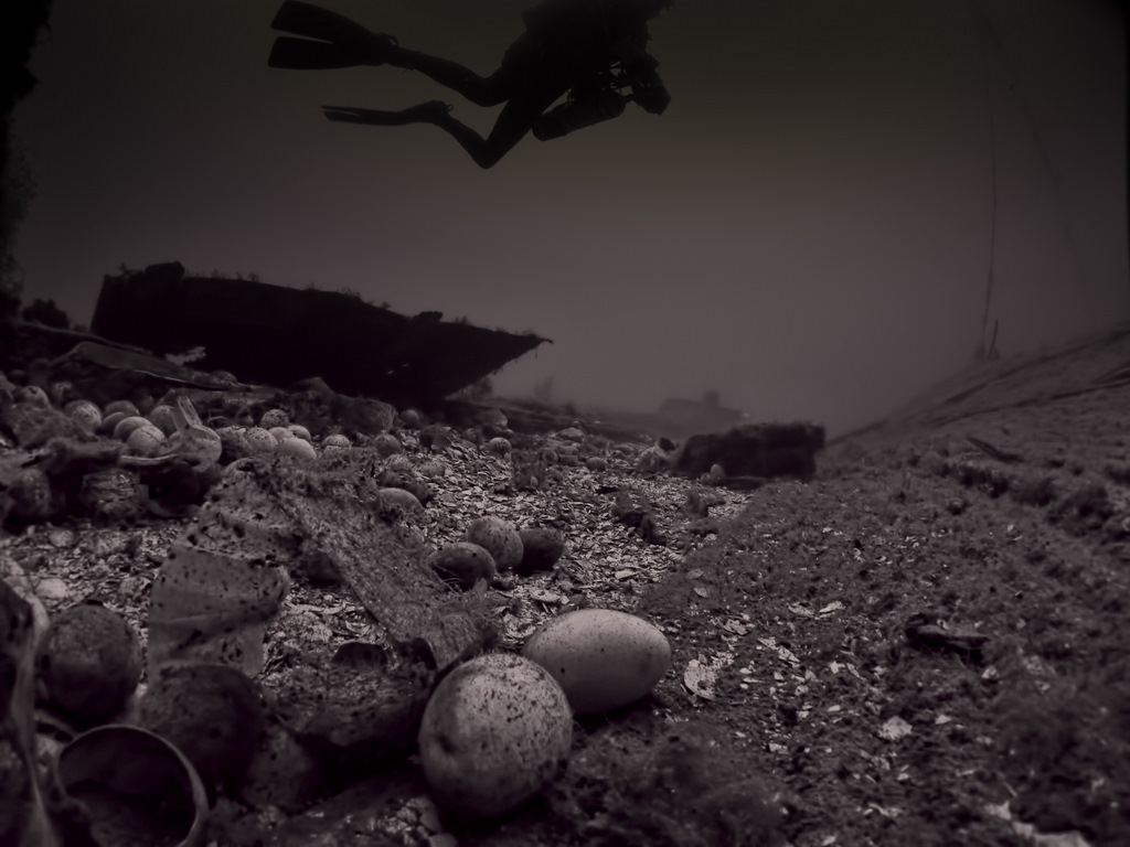 The diver can see each lorry and then look at what each was carrying; one of my favorite features is the spilled cargo of eggs which still lies at 42 meters in the sand. It is strange to see a 30-year-old egg still intact. In fact, there are even places that have still not been entered by a human in that length of time – and that is exciting stuff for the experienced diver, trust me!
