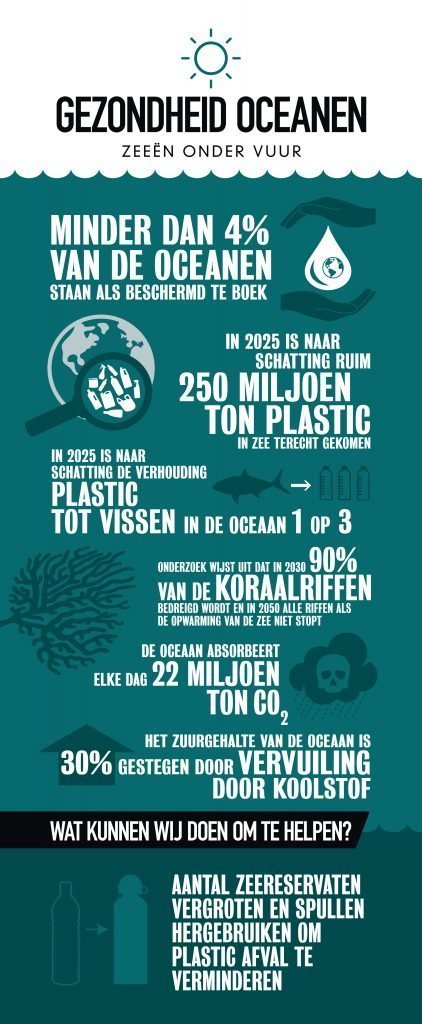 En onze waterplaneet kan daarbij alle hulp gebruiken. Acht miljoen ton aan plastic belandt ieder jaar in zee. Hogere temperaturen en verzuring van het zeewater hebben 20 procent van de koraalriffen ter wereld vernietigd. Overbevissing is onstuitbaar. Sommige haaiensoorten worden acuut met uitsterven bedreigd, hun aantallen zijn al met 80 procent geslonken. Als deze toproofdieren verdwijnen, raken complete ecosystemen uit balans.