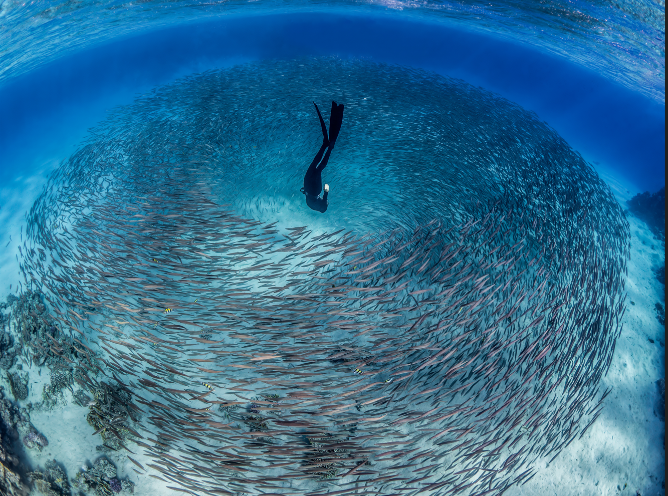 Победителем конкурса » Подводный фотограф года 2024 » (Up & Coming Underwater Photographer of the Year 2024 ) стала Лиза Стенгель (Lisa Stengel) из США. На ее снимке «Окно возможностей» изображена махи-махи, которая ловит сардину в шар с приманкой в Мексике.