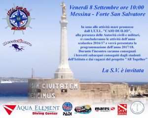 The event has ended, but the activities of Aqua Element and MessinAmare within the Caio Duilio Institute at Messina with the activities of Scuola D’Amare and a project that will bring students to Malta to integrate scuba diving and English learning have already begun with the new school year.