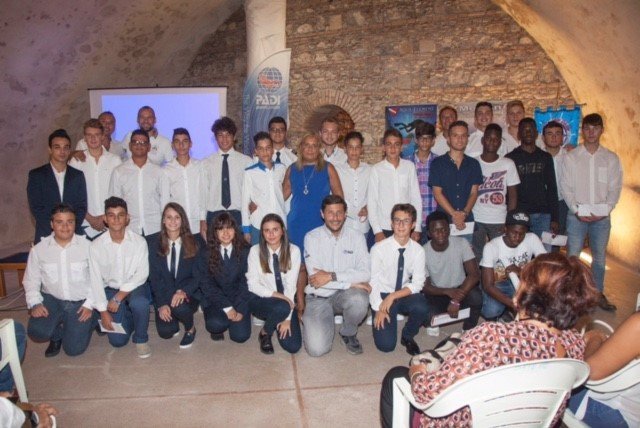 The Headmaster of the Nautical Institute, Prof. Maria Schirò, the military authorities, the Vice-President of DAN Europe Guy Thomas, the Regional Manager of PADI EMEA Fabio Figurella, the regional representative of MARES Nino Alessi and the diving instructors of the Aqua Element diving center all attended the awarding ceremony.