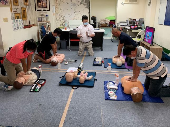 當前,為了嚴防疫情的傳播與擴散,全球大部分的國家和地區仍實施著管控限制和隔離措施,台灣也不例外。各位學員與會員的安全一直以來都是 PADI 所有培訓的首要考量,在課程期間,PADI 工作人員做了額外的安排與充分的準備:提前利用膠帶把教室劃分成4個區域以確保每位候選人之間保持足夠的社交距離;同時,每位候選人都配有單獨的一套EFR 培訓器材(如AED儀器,CPR 人體模型,手套,呼吸隔離裝置等),還提供了每人一瓶含75 %酒精的消毒噴霧供大家隨時使用。