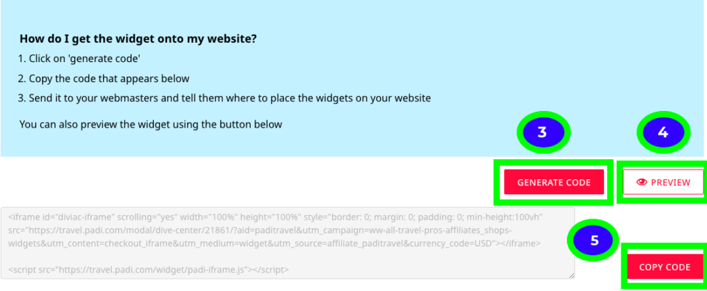 - 自定義您在小工具中展示的產品,包括您可能希望展示的特定組合(例如:僅限初學者的課程;包含潛水和繼續教育課程的套餐等)